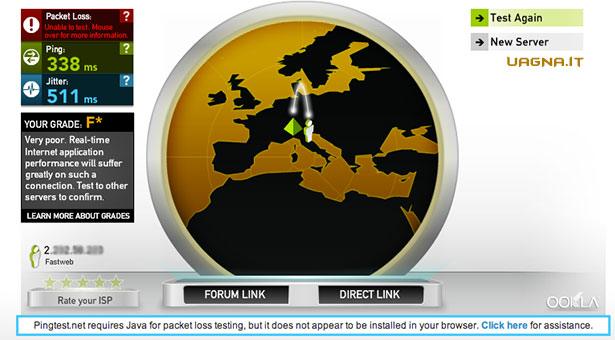 • Ci credo che hai questi parametri, coglione! Pingtest non offre nemmeno risultati affidabili! Pingtest fatto il test connettendoti al server che più ti è vicino e che ha minore latenza. In questo modo ci credo che hai un ping di 8ms e un jitten nullo.