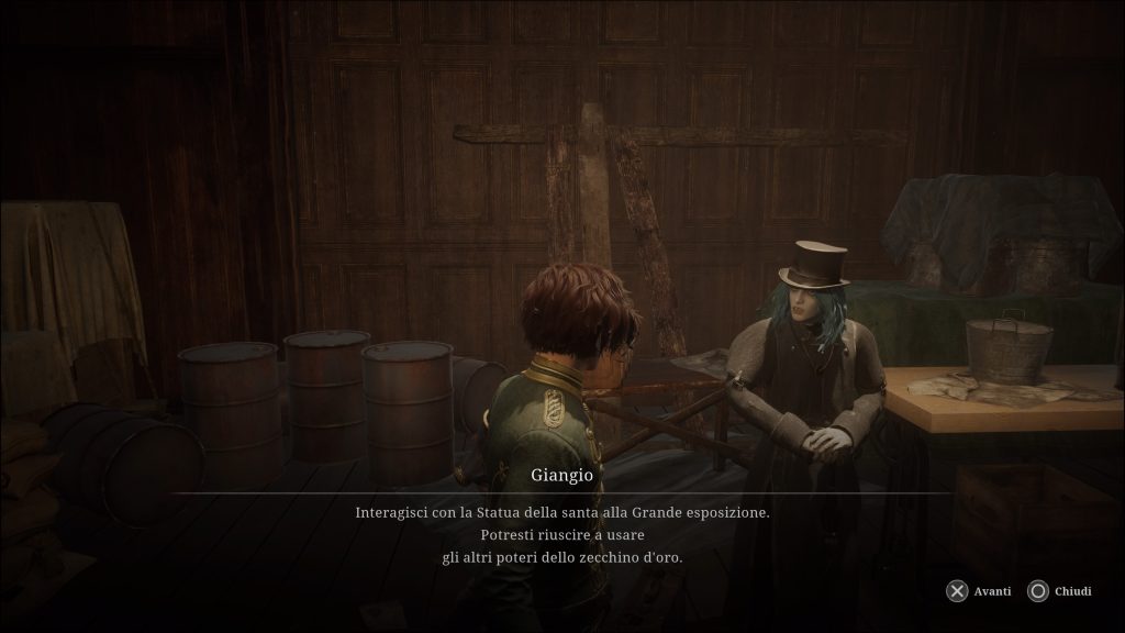 Come vi abbiamo anticipato, in Lies of P l’Ergo serve non solo a salire di livello, ma anche a fare acquisti. Ci sono diversi tipi di venditori, da quelli che si aggirano vicino agli Stargazer in particolari aree delle mappe, agli NPC che troverete riuniti presso l’Hotel Krat mano a mano che proseguirete nella trama principale. Già dalle prime ore di gioco sbloccherete, ad esempio, Polendina, una sorta di maggiordomo dell’Hotel che vi fornirà anche qualche utile informazione di lore. Più avanti si uniranno al gruppo anche Pulcinella, una creazione del personaggio Venigni, e Alidoro, di cui parlavamo poco fa: questo personaggio vi permetterà di scambire l’Ergo Raro ottenuto dai boss con pezzi di equipaggiamento unici. Prima però, dovrete trovarlo!