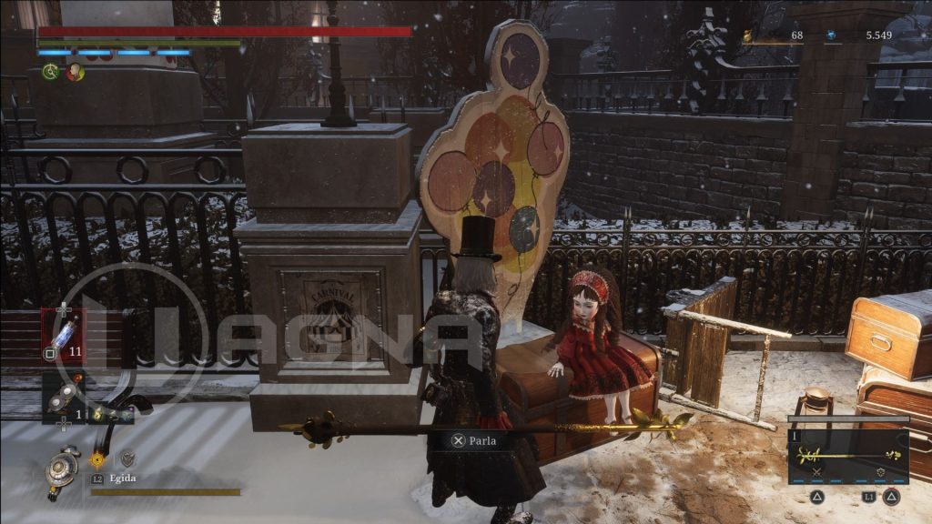 Incontrerete per la prima volta la bambolina presso il Giardino del Luna Park, sta seduta su una cassa di legno vicino allo Stargazer. Dopo averle parlato, vi chiederà di ritrovare le sue preziose scarpette rosse, così da permetterle di viaggiare di nuovo. Per trovare le sue scarpe, dovrete esplorare a fondo l’area, salire sulla ruota panoramica (c’è una cabina con la porta aperta, aspettatela e salite) così da raggiungere la giostra e il prezioso scrigno che contiene le scarpette. Portategliele e riceverete il primo pezzo del suo disegno (ve ne servono quattro, uno per ogni incontro) e un Disco, Lisrim, fondamentale per completare il DLC al 100% e ottenere tutti i trofei!