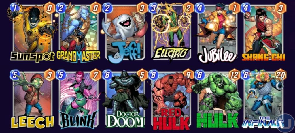 Questo mazzo gioca sull’aspetto più basilare dell’abilità di Blink. La condizione di vittoria ideale qui è giocare Jubilee al quarto turno, pescando una carta ad alto Potere dal mazzo. Fatto questo, si può sostituirla con Blink al turno 5, pescando un’altra carta ad alto Potere dal mazzo. Questo aumenterà sensibilmente le chance di vittoria in questo campo, e così potrete dedicarvi a un altro luogo nel quale primeggiare.