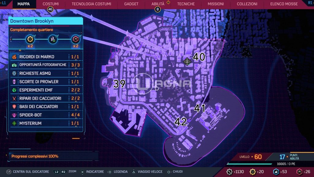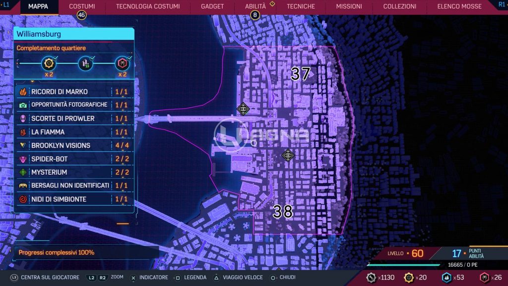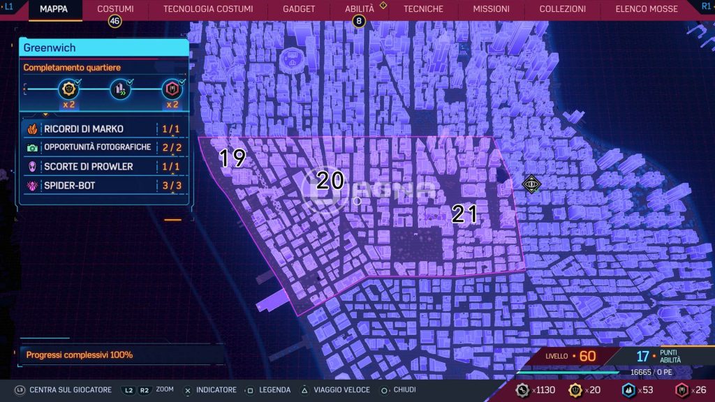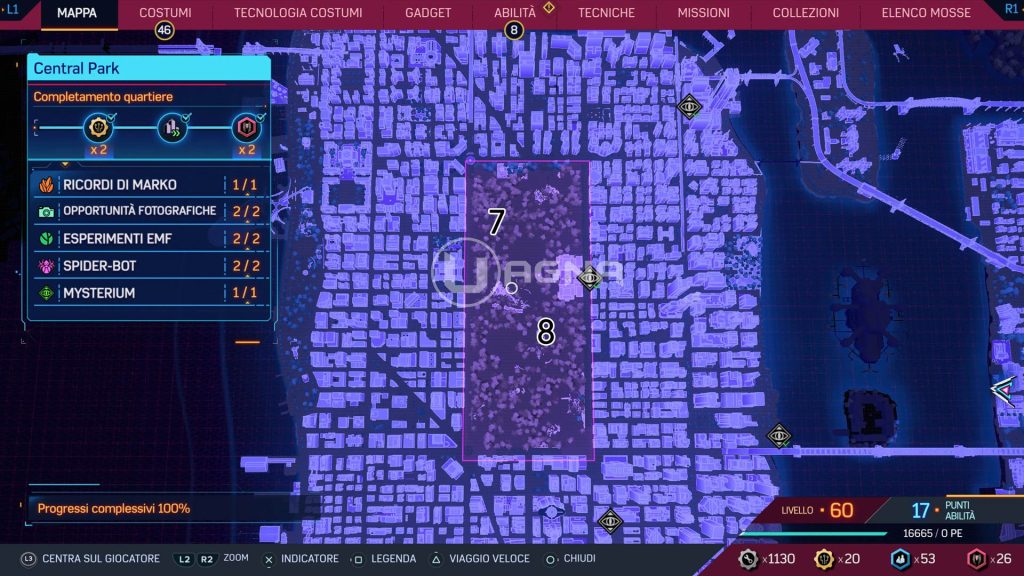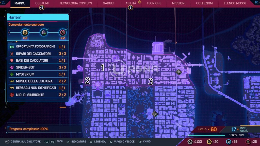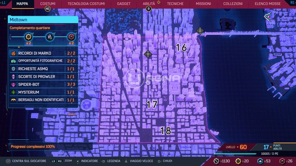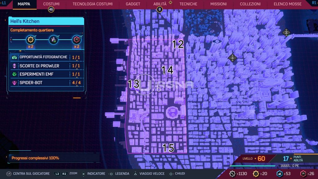 Esistono 42 spiderbot sparsi in giro per New York, e si tratta dell’unico collezionabile che non viene segnalato sulla mappa del menù. In realtà, troverete molti di essi nelle vostre scorribande in giro per la città: i bot in questione emettono un segnale di colore viola che potete facilmente scorgere, ma è anche vero che alcuni di loro sono stati posizionati in luoghi poco frequentati o difficili da vedere a prima vista.