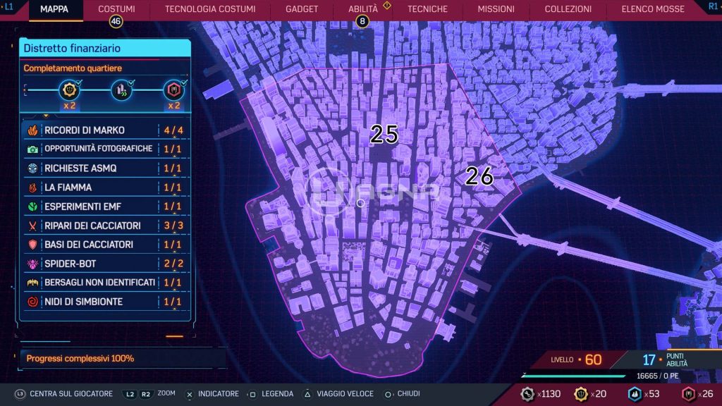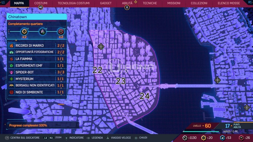 In questa semplice ma esplicativa guida, trovate una serie di immagini che vi riportano l’esatta posizione di tutti gli spiderbot di Marvel’s Spider-Man 2, suddivisi per ogni quartiere della città. Trovare gli spiderbot non solo è fondamentale per ottenere il trofeo di platino (ecco la nostra guida ai trofei), ma consente anche di sbloccare un particolarissimo filmato che collega il gioco a un noto film Sony…