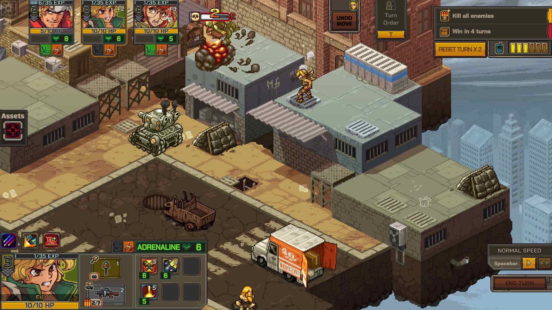Anche ai livelli più accessibili, Metal Slug Tactics non perdona. Avanzare richiede una gestione accurata delle risorse e una pianificazione meticolosa. Le fasi iniziali possono risultare particolarmente ostiche, persino per i giocatori più esperti, richiedendo un impegno considerevole nel padroneggiare le abilità dei personaggi e nel fronteggiare le forze avversarie.