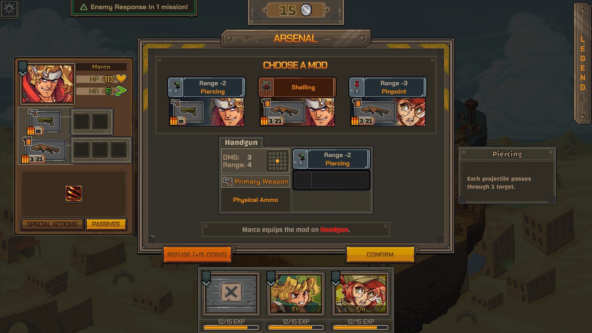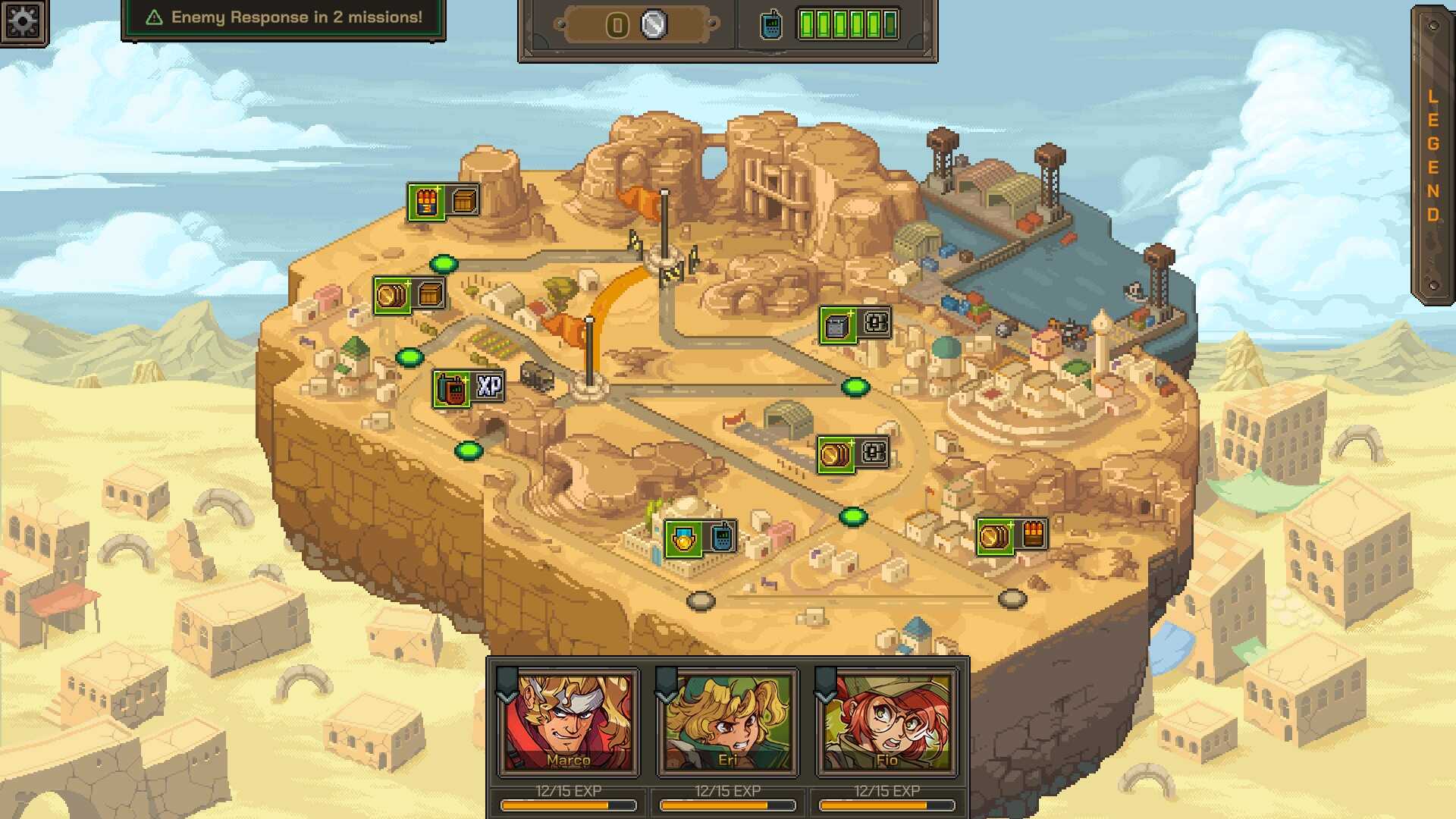 L’elemento ruolistico in Metal Slug Tactics emerge chiaramente nella progressione dei personaggi: ogni missione completata consente agli eroi di salire di livello, migliorando abilità e parametri. Inoltre, alcune missioni ricompensano con potenziamenti per le armi, ampliando le opzioni disponibili e trasformando ogni avanzamento in una soddisfazione tangibile.