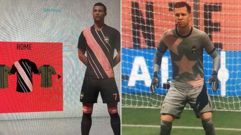La prima maglia, che ufficialmente è a strisce bianche e nere, sarà invece quasi interamente nera con una grande striscia rosa messa di traverso. La seconda maglia, invece, sarà verde, con il tricolore italiano messo al centro di essa (anche se sembra mancare il colore bianco). Nella stessa foto, possiamo anche osservare di sfuggita la maglia dedicata ai portieri, di colore grigio e con tre stelle rosa di traverso che indicano gli Scudetti vinti dalla Juventus FC.