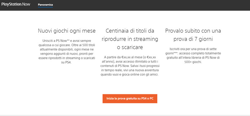 Viene comunque indicato che sarà possibile effettuare una prova di 7 giorni completamente gratuita, per testare PS Now e le sue funzionalità.