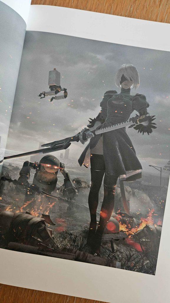 Oltre agli scenari mozzafiato del celebre videogioco, la raccolta contiene alcuni commenti del concept artist e aneddoti interessanti sullo sviluppo delle illustrazioni e sul loro utilizzo. Dalle copertine dei CD ai bozzetti scartati, dal crossover con Final Fantasy XIV alle immagini per lo spettacolo teatrale “YoRHa”, l’artbook è un volume da collezione che non può mancare sugli scaffali degli appassionati.