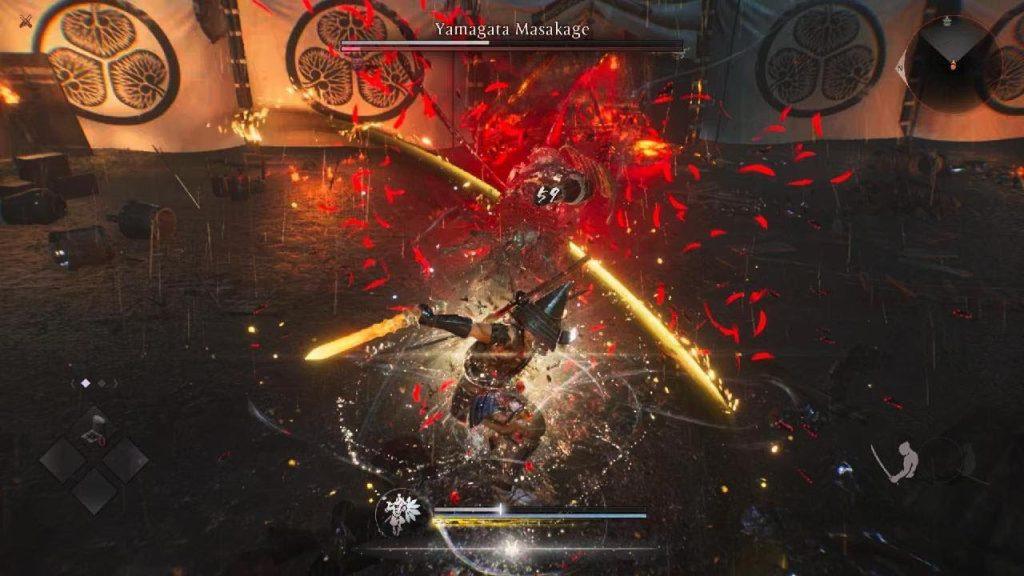 Durante lo scontro, Yamagata Masakage alterna combo rapide con colpi più pesanti e caricati, spesso seguiti da attacchi yokai che creano zone di oscurità. Qui molti giocatori sbagliano, cercando di continuare ad attaccare anche quando il proprio Ki è basso. Masakage è progettato proprio per punire esattamente questo comportamento.