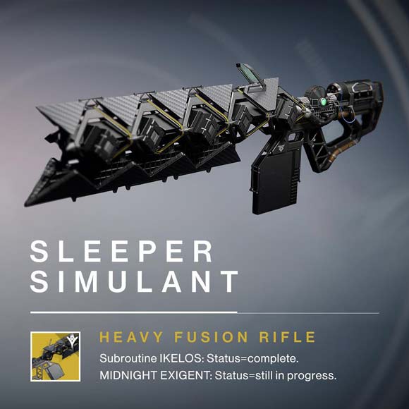• Un Fucile a fusione pesante chiamato “Sleeper Simulant”,  i proiettili di quest’arma attreverseranno i nemici e rimbalzeranno sulle superfici dure.