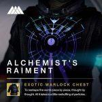 - Una Armatura per Stregoni chiamata “Alchemist’s Raiment”, con questo equipaggiamento le sfere di Luce raccolte mentre la Super Caricata è utilizzabile, ricaricheranno le granate e l’abilità corpo a corpo. Inoltre raccogliere munizioni per l’arma principale garantirà la possibilità di ottenere Glimmer.