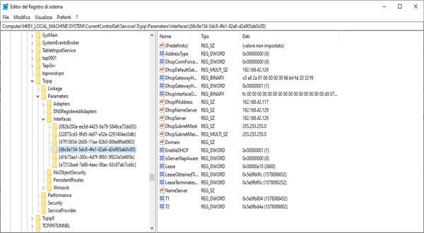 Tra le diverse sottocartelle di “Interfaces” (quelle chiamate con una serie di lettere e numeri), selezionate la cartella che alla riga “DhcpIpAddress” riporta il vostro indirizzo IP statico (quello che vi siete segnati prima!). Ora seguite le seguenti istruzioni:
