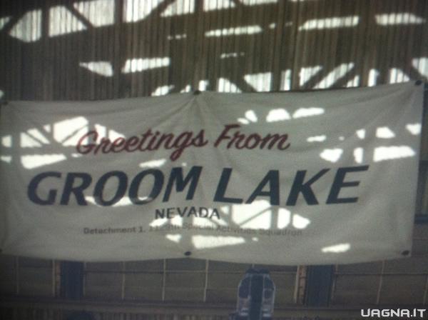ma nello stendardo con scritto “greetings from Groom Lake”:non vi ricorda la frase di T.E.D.D “prossima fermata Lago Groom”