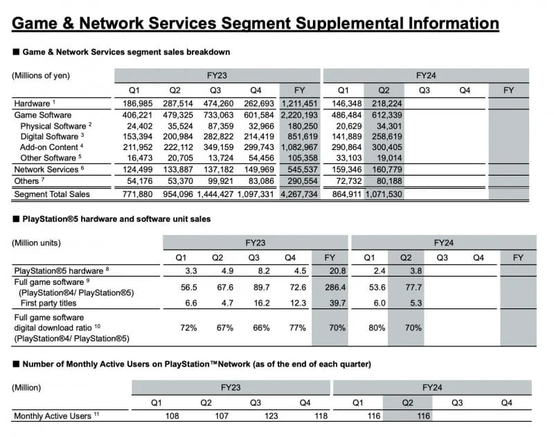 Sony ha pubblicato i risultati del secondo trimestre dell’anno fiscale 2024/2025, conclusosi il 30 settembre 2024, e i dati evidenziano una chiara crescita dei ricavi per la divisione PlayStation rispetto all’anno precedente. Sotto la guida del nuovo presidente Hiroki Totoki, i risultati iniziano a dare frutti positivi per l’azienda.