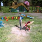 Un buon modo per ovviare al meglio ai vari problemi dei partner è quello di rivolgersi al Tokomon amico di Jijimon, che sarà una sorta di consigliere speciale per voi elencandovi i vari status del personaggio e anche come ovviare al problema. Dove trovarlo? Ma ovviamente a Floatia, una città che come abbiamo detto ha bisogno di crescere e che all’inizio sarà estremamente povera di offerta, ma che si arricchirà grazie a voi di nuovi abitanti e soprattutto forza lavoro: negozi di accessori e oggetti, depositi ove conservare tutti i materiali raccolti a Digiworld, e così via dicendo. Fondamentali, sin dalle prime battute, le due attività già avviate (fortunatamente) a Floatia: i campi di carne (sì, campi di carne, coltivazione della carne…) e la palestra per addestrare ed evolvere i nostri partner. Tramite la palestra è possibile scegliere quali parametri far aumentare grazie ad una intensa sessione di allenamento, che porterà non solo ad un ovvio aumento delle statistiche ma anche ad un affaticamento (che come spiegato prima è anche responsabile dell’alterazione più veloce di alcuni status) da tenere sott’occhio. Quando il Digimon sarà finalmente pronto, ecco che avverrà l’agognata digievoluzione che porterà alla nascita di un mostro più potente e pronto a farvi fare il salto di qualità. Un’evoluzione che non potrà essere controllata in prima persona da voi stessi, come in Digimon Story: i Digimon, a differenza dei Pokémon, possiedono molte evoluzioni a partire da un progenitore, e queste digievoluzioni vengono attivate a seconda di vari fattori e parametri come gli attributi potenziati. È proprio per questo che è relativamente semplice scombussolare le proprie strategie di squadra quando per un piccolo status alterato il vostro Tokomon, che speravate si tramutasse nel classico Patamon, finisce con il digievolvere nel fastidioso Tsukaimon. Fastidioso perlomeno per chi sperava, un giorno, di avere il possente Angemon a combattere al proprio fianco…