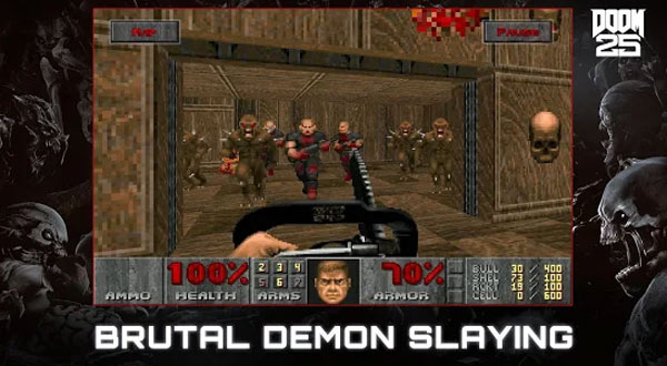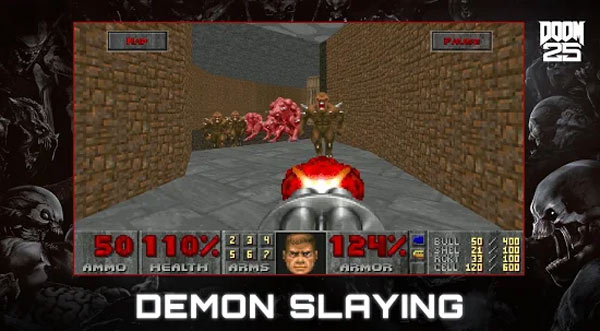 Certo, al giorno d’oggi, direte voi, potrebbe essere invecchiato, sia graficamente che a livello di gameplay. E invece ancora oggi, e con un joypad tra le mani, le sensazioni trasmesse dal gioco sono assolutamente impagabili. Nonostante la comprensibile iniziale sensazione di smarrimento, di fronte ad uno sparatutto in terza persona che consente solamente di ruotare la visuale in orizzontale e non in verticale, riprendere (o prendere per la prima volta) la mano con l’originale DOOM è estremamente naturale. Il gameplay non è stato minimamente toccato, e neppure consumato dal tempo. Il gioco continua a stupire con il suo arsenale di armi tra cui fucili a pompa, gatling e lanciarazzi, e la buona dose di varietà di ambienti e nemici, tutti naturalmente rappresentati con sprite che si muovono nello spazio 3D. Come una volta. Bello come una volta. Facile ma anche difficile, perché qui l’unica cosa da fare è imbracciare un qualsiasi fucile ed eliminare qualsiasi cosa ci si pari di fronte senza farci troppe domande, ma è anche vero che a difficoltà elevate l’esperienza si fa davvero tosta. Anche perché, e questo è rivolto specialmente ai più giovani che leggeranno, in DOOM non c’è alcuna rigenerazione della vita. Altro che gli FPS di oggi…