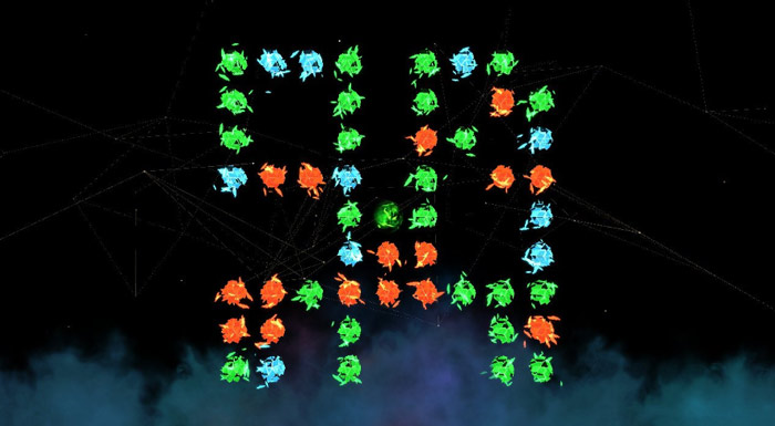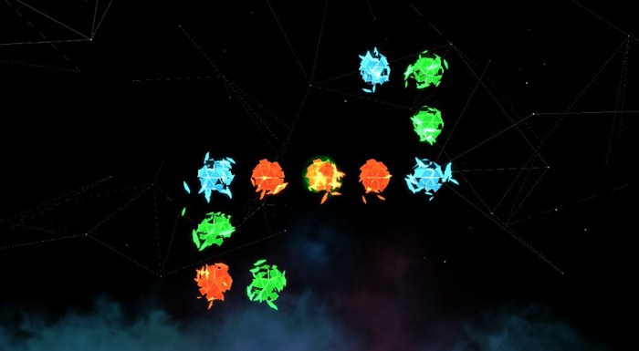 Ma veniamo al gameplay vero e proprio, che è relativamente semplice da comprendere ma non altrettanto facile da mettere in pratica. Su schermo, al primo stage, appaiono alcune sfere luminose di tre colori, rosso, verde e blu, e senza ulteriori spiegazioni e indugi potete iniziare l’azione. Premendo il tasto A su una sfera, cambierete il colore dell’intera riga, colonna o addirittura entrambe se la sfera in questione è parte di entrambi i gruppi. Detto così sembra semplice, del resto risolvere il primo enigma richiede una manciata di secondi una volta compreso il funzionamento.
