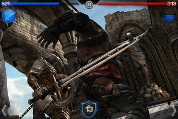 Il combattimento in Infinity Blade risulta diverso dai soliti action-game: non avremo infatti particolari comandi per attaccare o spostarci ma semplicemente con il nostro tocco potremo infliggere dei fendenti nei punti del corpo del nemico, un po’ come succede con Fruit Ninja, in cui manovravamo la spada con un semplice tocco sullo schermo. Un modo di combattere piuttosto innovativo, soprattutto se applicato a giochi action come Infinity Blade. Il combattimento è basato fondamentalmente sul tempismo in una sorta di continua botta e risposta, in cui dovrete difendere o schivare per poi contrattaccare. Potrete inoltre utilizzare vari anelli magici che permetteranno di evocare potenti magie durante il combattimento.