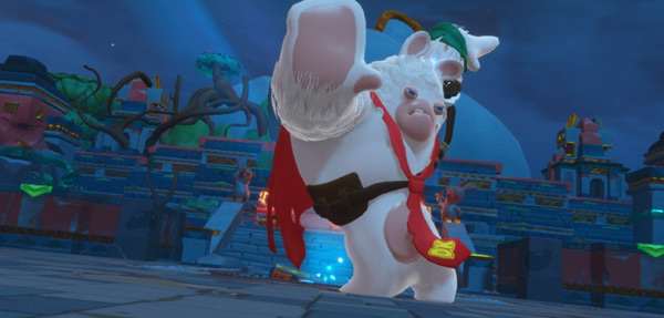 Senza alcuna volontà di prendersi sul serio, per spirito stesso dell’opera, la storia di Donkey Kong Adventure si articola principalmente in tre regioni: la giungla, la spiaggia e infine il maestoso tempio di Rabbid Kong, teatro dello scontro finale, che però come sempre viene trattato in modo estremamente goliardico e divertente. MRKB si riconferma un prodotto gioioso, giocoso, solare, capace di prendersi in giro da solo, di scherzare sulla base di citazioni e parodie, e di aiutare il giocatore ad affezionarsi ad un quartetto, quello dei protagonisti – ci aggiungiamo anche Beep-0, che presto viene tramutato in una sorta di hoverboard da nonno Cranky – che rispecchia la follia e la genuinità dei Rabbids, da sempre attratti dagli scherzi e ignari (non sempre) di cosa sia la paura di fronte al pericolo. Certo, possiamo condannare qualche cliché, come le due chiavi che servono ad aprire le porte del tempio di Rabbid Kong e che sono custodite dai due mid-boss, ma nell’insieme generale, di un gioco che non vuole porre l’attenzione sul racconto di una storia memorabile, siamo molto soddisfatti. Qualche effetto a sorpresa non avrebbe guastato, ma non vogliamo andare per forza a cercare il pelo nell’uovo, tranquilli.