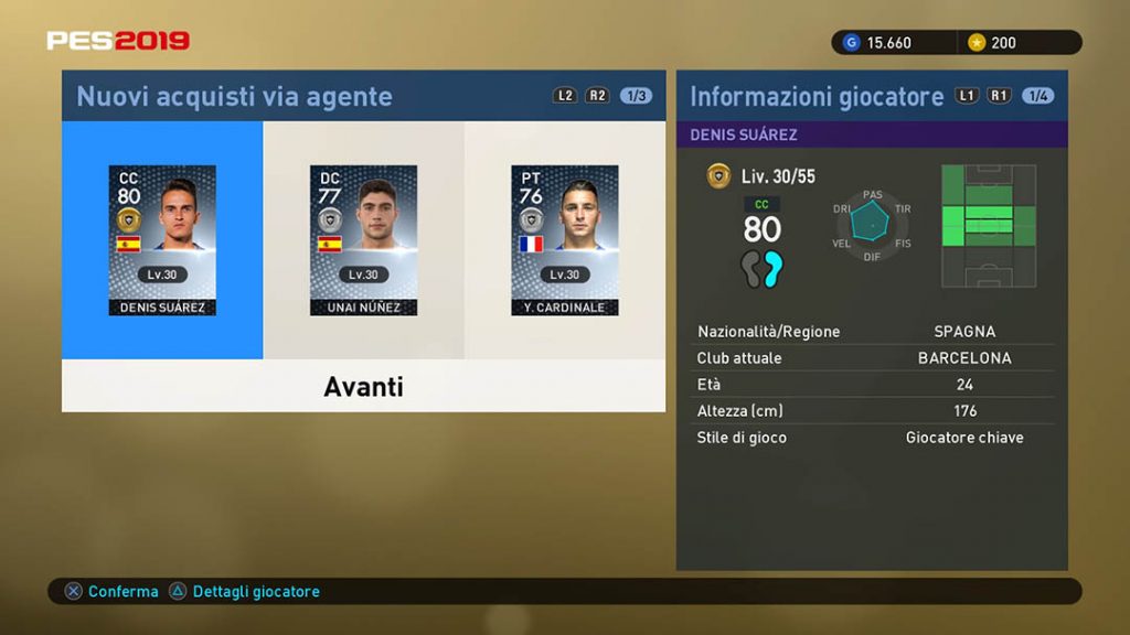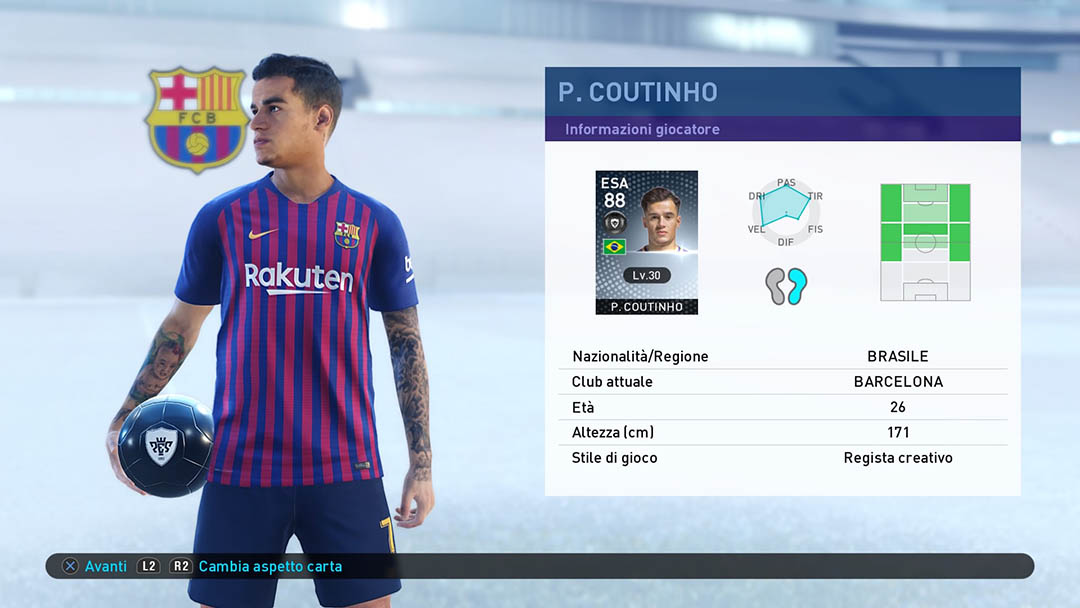 PES 2019 si apre con una evidente dichiarazione di intenti: la voglia di migliorare senza stravolgere il lavoro fatto negli ultimi anni, un percorso che prosegue ancora oggi a partire da quel lontano 2014 in cui venne adottato il Fox Engine. Impossibile non notare la continuità stilistica dei menu con i precedenti episodi del franchise, il livello di cura che contraddistingue la resa visiva generale della produzione, ma soprattutto la persistenza di determinati elementi del gameplay sempre più orientato verso il realismo simulativo. Al fischio di inizio ritroviamo la fluidità e la bellezza del palleggio, fase arricchita grazie alle nuove animazioni a disposizione dei giocatori, credibili e ben realizzate. Basta inserire il disco per rendersi conto di quanto il gioco sia molto meno macchinoso rispetto all’ultima stagione. Il calcio secondo Konami – lo dicevamo qualche mese fa nella nostra anteprima – è più che mai ragionato, l’intelligenza artificiale è infatti ben attenta a chiudere velocemente le linee avversarie per mettere l’utente alle strette, ponendolo nella condizione di dover dosare ogni passaggio o movimento. Dall’altra parte il supporto dei propri compagni di squadra si fa ben notare sul rettangolo verde con un buon supporto sia nella fase di attacco che in quella di difesa (le strategie e gli schemi fanno comunque la loro parte). Gli elementi di questo mosaico calcistico si fondono insomma per dar vita a match mai banali, con una gestione del gioco appagante e un risultato che si avvicina in maniera importante alle partite trasmesse in TV. Tra le altre migliorie abbiamo notato, con grande positività, anche quelle che hanno interessato il comparto delle interazioni con i giocatori avversari. PES 2019 conta su un sistema di collisioni molto meno arcade che amministra le situazioni con molta precisione, migliorie che si faranno sentire in occasione di uno scontro aereo per intercettare la palla, oppure con un tackle dell’ultimo minuto.