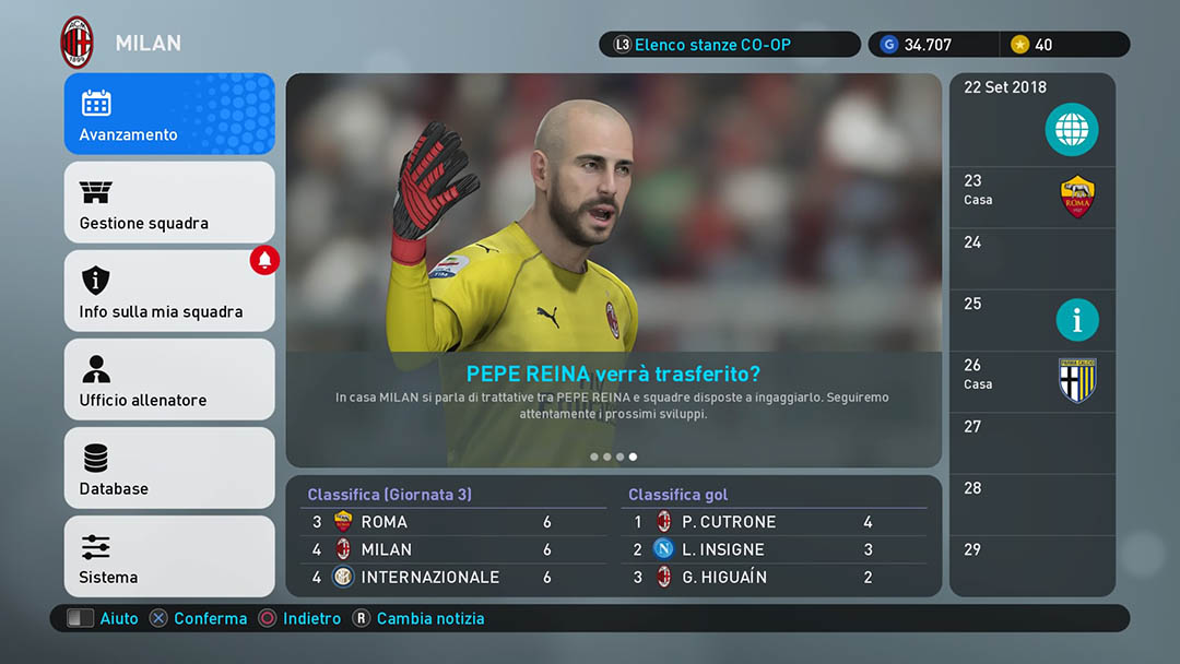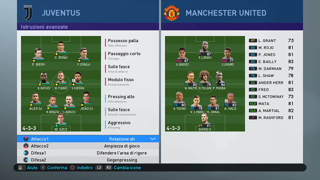 Versione testata: PlayStation 4, con l’utilizzo del File Opzioni per divise, stemmi e competizioni