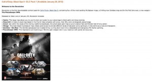 Come vedete dall’immagine (clicca per ingrandire) a destra si conferma Revolution il 1° DLC di Black Ops 2. Puoi consultare tutte le informazioni che avevamo divulgato su Revolution in questa pagina e il dettaglio sulla nuova mappa zombie.