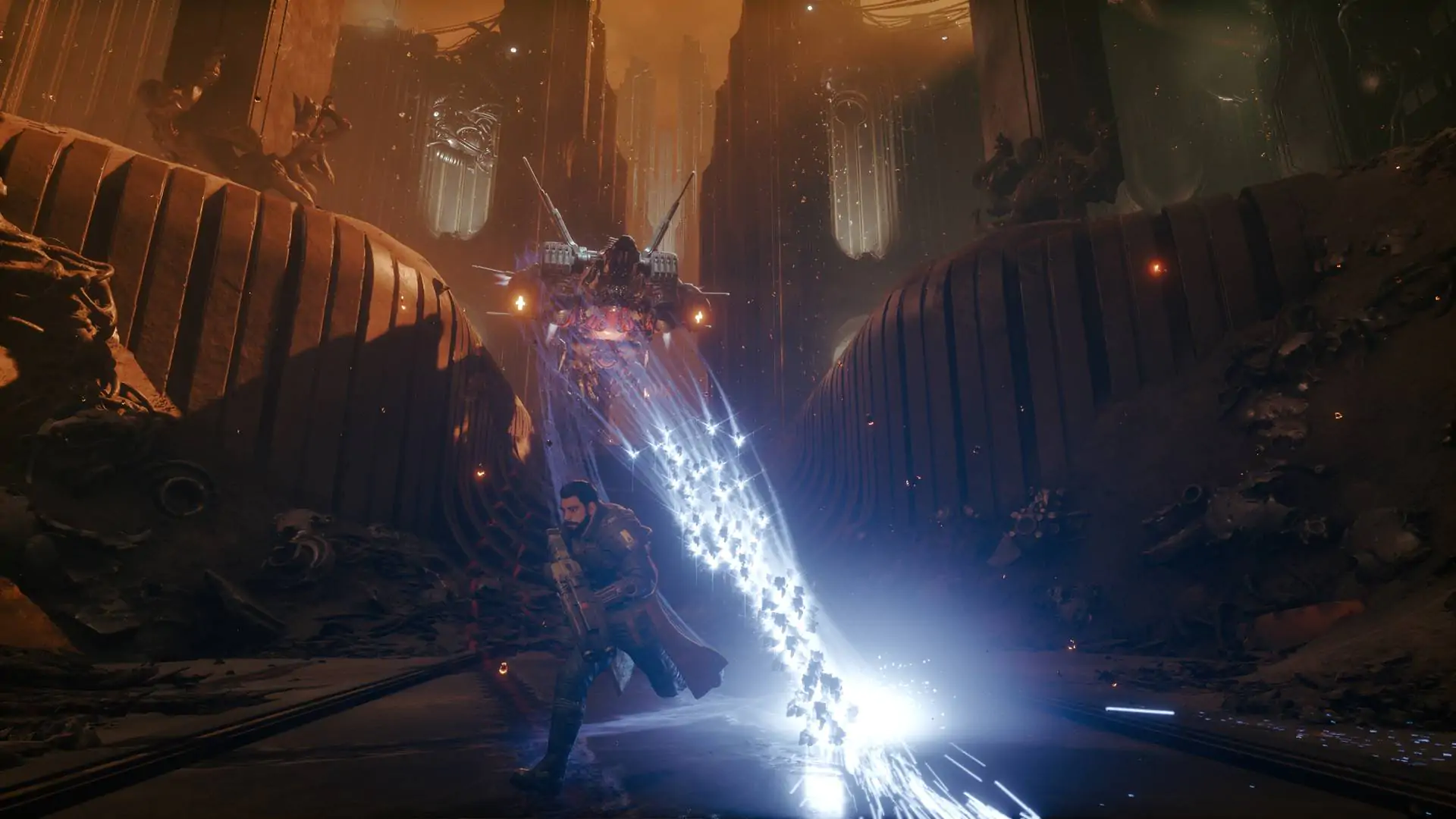 Anche Saros sarà un’esperienza “gameplay-first”, ma Housemarque punta comunque a raccontare una storia intensa e “ossessionante”. Il protagonista è Arjun Devraj, un Soltari Enforcer che approda sul pianeta Carcosa alla ricerca di una persona misteriosa. Il protagonista appare determinato e disposto a tutto pur di raggiungere il suo obiettivo, una motivazione che giustifica anche le sue abilità in combattimento.