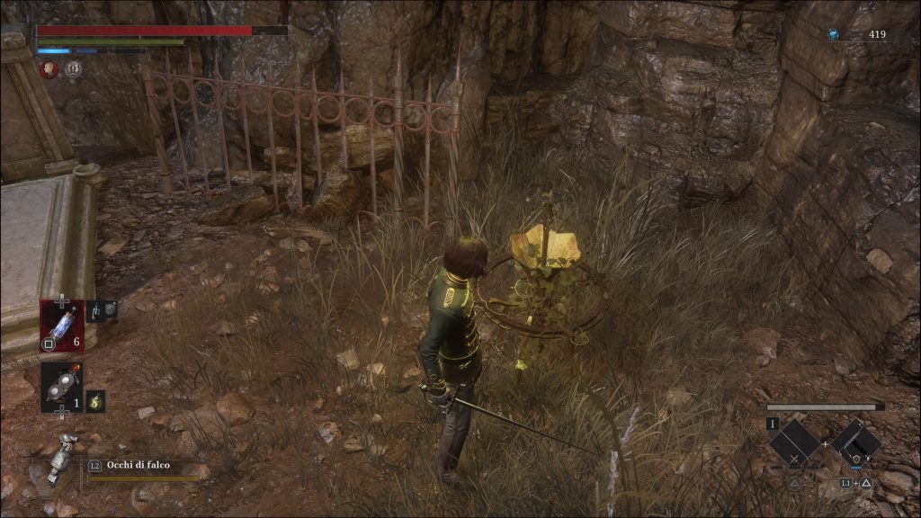 Ad ogni modo, di qualsiasi cosa si tratti, esiste uno Stargazer dorato e in parte arrugginito all’entrata del Sentiero del Pellegrino, tra alcune lapidi. Se interagiamo con il misterioso Stargazer ci viene detto che non è utilizzabile al momento. Con tutta probabilità sarà proprio quello l’ingresso del primo DLC di Lies of P.