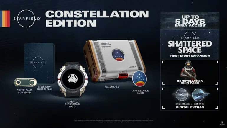La Constellation Edition, come avete potuto leggere poco sopra, garantisce inoltre la prima espansione della storia, Shattered Space, oltre all’accesso anticipato di cinque giorni a Starfield. Ciò significa che acquistando l’edizione da collezione potrete iniziare a visitare l’infinito universo di Starfield a partire dall’1 settembre, invece della normale data di uscita.