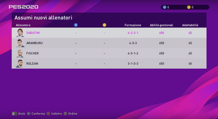 Appena avviata la modalità myClub, vi verrà posta davanti la scelta dell’allenatore da reclutare, inizialmente saranno disponibili quattro allenatori: