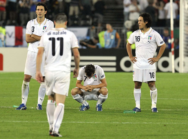 Un altro sogno sfuggito agli Azzurri, e nella maniera peggiore possibile. La Nazionale Italiana guidata da Cesare Prandelli, agli Europei 2012, si presentò non certo come una delle favorite, ben lontana dalla potenza che avevano dimostrato squadre come la Germania e la Spagna. Proprio gli iberici, dopo un cammino incredibile della nostra squadra che riuscì a eliminare l’Inghilterra prima e la Germania poi con una prestazione superlativa di Mario Balotelli, usciranno vincitori dalla tristemente nota finale di Kiev, quell’1 luglio 2012 nel quale l’Italia venne bucata ben 4 volte da Silva, Alba, Torres e Mata. Un sogno che stava per diventare realtà, quello di riportare la coppa nel nostro Paese dopo tanti anni, e che invece si fermò sul più bello, e nel peggior modo. Una sconfitta brutale, che sancì ancora una volta lo strapotere spagnolo – fu il terzo successo internazionale consecutivo per la Spagna.