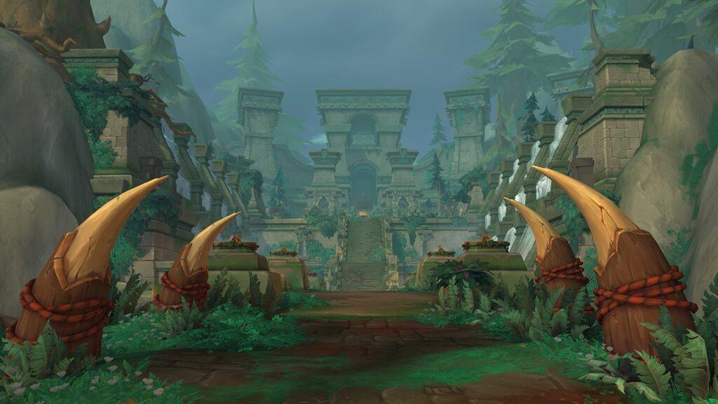 Li adoro non solo perché sono luoghi distintivi, ma anche per il modo in cui sono stati collocati nel paesaggio. Il tempio di Akil’zon, per esempio, si trova sulla cima di una gigantesca vetta montuosa e offre una vista straordinaria su Zul’Aman e sull’oceano. Quello di Halazzi è immerso nella nebbia, il tempio di Nalorakk è praticamente un dungeon, mentre quello di Jan’alai sorge su un’isola isolata, tra colonne di fuoco che emergono dal terreno.