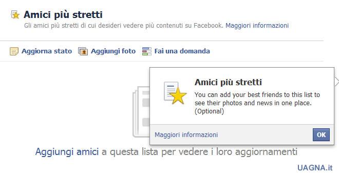 Questo aggiornamento permetterà di visualizzare le foto e gli aggiornamenti degli amici per i quali abbiamo più interesse a seconda del ruolo che hanno (o hanno avuto) nella nostra vita. Oltre ad aggiungere i tuoi amici di Facebook in queste nuove liste (famigliari, amici più stretti) potrai anche decidere di limitare il tuo flusso delle informazioni verso altri amici. In particolare potrai inserire alcuni amici in 2 nuove liste: “conoscenti” e “lista con restrizioni“.