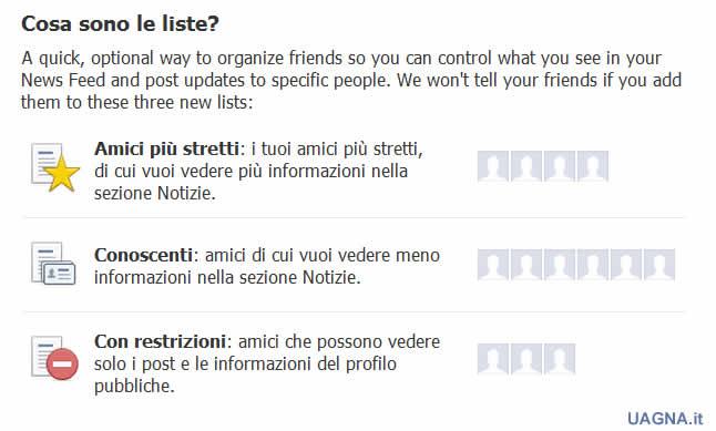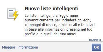 Vengono introdotte le liste intelligenti. Queste liste vi permettono di visitare gli aggiornamenti e condividere informazioni con le persone a voi più strette o anche con un determinato tipo di “amici” che avete su Facebook. Potrete condividere delle informazioni solo con i colleghi o solo con i parenti. Le vecchie liste personalizzate (quelle che creavate voi, includendo o meno gli amici di Facebook) restano tutt’ora attive ma diventano inutili dato che vi verrà chiesto di scegliere gli amici più intimi o catalogare gli amici di facebook dei quali vi interessa meno come “conoscenti”.