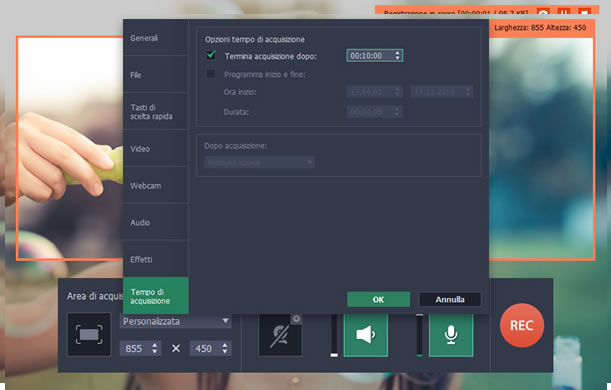 Dopo aver configurato al meglio il software sarà possibile avviare la registrazione dello schermo del proprio Mac. E’ anche possibile impostare un timer durante il quale il programma catturerà a video tutto quello che comparirà durante un determinato intervallo di tempo.